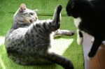 Iwon Blum: Die „Ninja-Katze“ ist einfach ein unglaublich toller Schnappschuss: Die Körperhaltung der Katze, die gespreizten Pfötchen, ihr konzentrierter Blick – Martial Arts at its best. Für mich auch ein Sinnbild der katzentypischen Vereinigung erhabener Eleganz mit niedlicher Albernheit in ein und demselben Wesen 😉 Ein ganz wunderbares Bild.