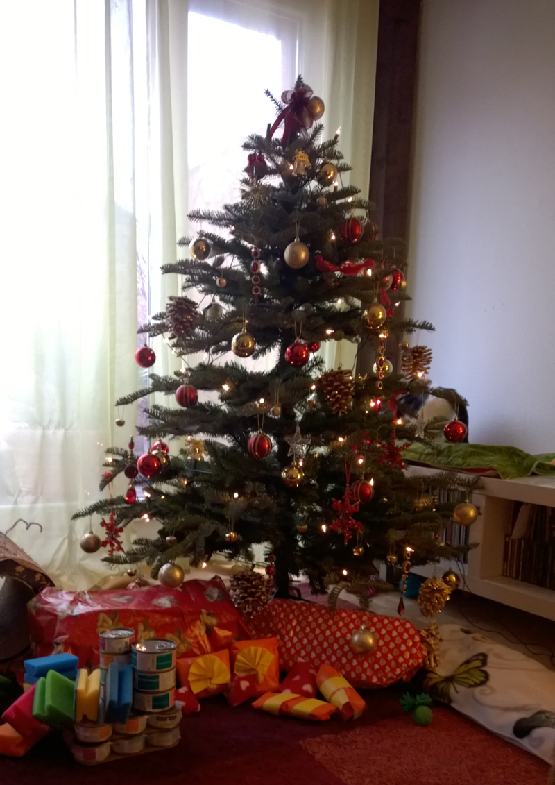 Stimme aus dem Off: „Na, wie viele Bäume stehen denn hier sonst noch im Wohnzimmer rum?“